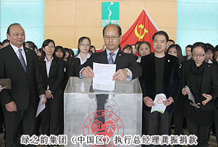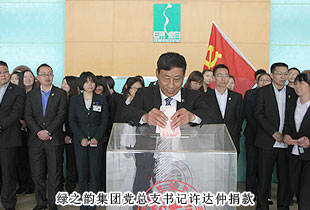 愛是世界上最美的語言,行動是對生命最大的敬畏。綠之韻集團繼4月21日通過湖南省光彩基金促進會、長沙光彩事業(yè)促進會向四川雅安災(zāi)區(qū)緊急捐贈第一筆300萬元人民幣愛心款項后,又于4月22日下午繼續(xù)愛心的接力,組織集團總部及綠之韻國際大酒店貴賓樓的全體員工向災(zāi)區(qū)捐款。綠之韻集團董事常務(wù)副總裁勞嘉、綠之韻集團(中國區(qū))執(zhí)行總經(jīng)理龔振、綠之韻集團黨總支書記許達仲等集團高管帶頭通過現(xiàn)金或愛心認(rèn)捐書的方式向災(zāi)區(qū)進行愛心募捐。