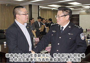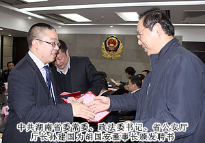 2013年3月26日下午,湖南省公安廳隆重舉行了第五屆特邀監(jiān)督員聘請(qǐng)儀式暨座談會(huì)。中共湖南省委常委、政法委書記、省公安廳廳長孫建國為省廳第五屆特邀監(jiān)督員頒發(fā)聘書并作重要講話;湖南省公安廳黨委副書記、常務(wù)副廳長胡旭曦,廳黨委委員、警令部主任趙立民,廳黨委委員、紀(jì)委書記周賽保,省公安廳經(jīng)偵總隊(duì)總隊(duì)長唐祥生,省交警總隊(duì)總隊(duì)長楊琪君等廳機(jī)關(guān)有關(guān)部門負(fù)責(zé)同志參加了座談會(huì)。會(huì)議宣讀了《湖南省公安廳關(guān)于聘請(qǐng)第五屆全省公安機(jī)關(guān)特邀監(jiān)督員的決定》。綠之韻集團(tuán)董事長胡國安作為湖南省政協(xié)委員、優(yōu)秀企業(yè)家代表憑借多年對(duì)社會(huì)民生的關(guān)注,擔(dān)任社會(huì)職務(wù)積極履行職責(zé)的表現(xiàn),受聘為第五屆省公安廳特邀監(jiān)督員,成為31名監(jiān)督員中僅有的兩名省政協(xié)委員代表之一。