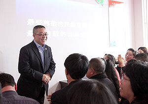 2013年,是綠之韻集團成立十周年,也是綠之韻人搶抓契機、升騰夢想的年份。所有綠之韻營銷伙伴們正滿懷豪情壯志,一步步向著十年恢弘盛景的目標進發(fā)!為了深入了解市場情況,引領(lǐng)廣大伙伴們凝心聚力,擂響2013“決勝十年”的奮進戰(zhàn)鼓,3月16日—17日,綠之韻集團董事長胡國安率營銷中心(中國區(qū))業(yè)務(wù)總經(jīng)理何健、教育培訓(xùn)部副經(jīng)理夏運良等一行,在綠之韻河北地區(qū)高級經(jīng)銷商浦守仁、王愛麗的陪同下,對河北省石家莊、唐山地區(qū)的各準備申辦的服務(wù)網(wǎng)點進行了考察,并在各地區(qū)分別召開了營銷骨干會議。