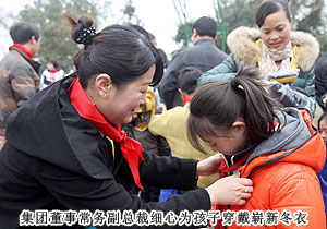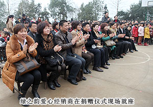 隨后,綠之韻集團董事、常務(wù)副總裁勞嘉和綠之韻20名愛心經(jīng)銷商、愛心慈善大使一起為貧困學(xué)生們穿上嶄新的冬衣、發(fā)放學(xué)習(xí)用品。盡管操場上寒風(fēng)簌簌,可領(lǐng)取到滿載著愛心的嶄新冬衣后,孩子們每個人的臉上都綻放出著歡樂和幸福的笑容。綠之韻濃縮著溫情的冬衣帶給莘莘學(xué)子的不只是暖意,在這樣一個充滿著奉獻與感恩的冬天,更多的愛心正在萌發(fā)、生長和茁壯。
