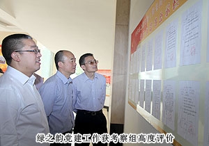 在調(diào)研中,彭繼球主席一行詳細了解了綠之韻的經(jīng)營現(xiàn)狀及遠景規(guī)劃,參觀了產(chǎn)品形象展廳,對“清調(diào)補衡”的產(chǎn)品理念及利稅、公益等企業(yè)公民行為給予高度評價。在綠之韻黨支部黨建工作成果系列展板前,彭繼球主席一行停下腳步,就公司黨建工作與胡國安董事長進行了交流。作為非公經(jīng)濟企業(yè)優(yōu)秀基層黨組織,綠之韻黨支部積極扶危濟困,德行并重,發(fā)展企業(yè),回饋社會。連續(xù)多年取得的黨建成果,受到了考察組一行的高度贊揚。彭繼球主席重點指出:綠之韻黨支部在黨員隊伍的建設(shè)、發(fā)展教育管理、服務(wù)企業(yè)健康發(fā)展、為黨凝聚職工群眾等方面都做了大量的、有特色、有實效的工作,取得了明顯的成績。希望綠之韻黨支部在今后的工作中,進一步完善機制,加強領(lǐng)導(dǎo),在推動企業(yè)發(fā)展、服務(wù)群眾、凝聚人心、促進和諧方面發(fā)揮出重要的作用。