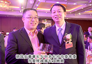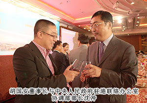 中央人民政府駐港聯絡辦公室協調部部長沈沖,外交部駐港特派員公署副特派員李元明,中央人民政府駐港聯絡辦公室經濟部副部長孫湘一,全國港區(qū)人大代表召集人袁武,全國政協常委、僑界社團聯會主席、全國僑聯副主席陳有慶等領導出席成立儀式。中共長沙市委常委、市委統(tǒng)戰(zhàn)部長、市海外聯誼會會長文樹勛,長沙市人民政府副市長何寄華,長沙市政協副主席、市工商聯主席、市總商會會長彭繼球等湖南省市領導出席。湖南省政協委員、長沙市工商聯(總商會)副會長、綠之韻集團董事長胡國安應邀出席,并積極參與“湘港”經濟建設討論,為推動兩地互促發(fā)展建言獻策,被推選為香港長沙商會的會董。