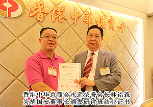 在香港工商業(yè)會長研討班培訓期間,胡國安董事長隨班參觀了香港貿發(fā)局、香港中國企業(yè)協會、香港交易所等機構,為促進香港、長沙與國際間的經貿合作和科技、文化交流等貢獻力量。胡董表示:長沙具有中部崛起的后發(fā)優(yōu)勢,隨著國家中部崛起戰(zhàn)略的逐步落實以及長沙市的飛速發(fā)展,綠之韻集團未來的戰(zhàn)略布局和發(fā)展策略與香港密不可分,希望能借助香港長沙商會的成立契機,加強與世界各地的經貿交流互通,提升香港綠之韻國際集團股份有限公司在香港地區(qū)的影響力,最終走出國門,走向世界。