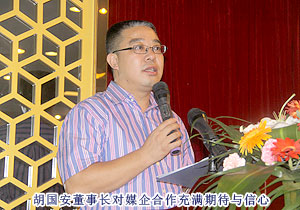 簽約儀式上,綠之韻集團(tuán)董事長胡國安與湖南日報報業(yè)集團(tuán)副總經(jīng)理兼大眾衛(wèi)生報社社長徐勇簽署戰(zhàn)略合作協(xié)議書。胡國安董事長表示:媒企合作是實現(xiàn)企業(yè)與社會進(jìn)行溝通最有公信力的途徑,如何充分利用媒體優(yōu)勢實現(xiàn)宣傳層次再提升、企業(yè)品牌再上新臺階等,都是綠之韻在新形勢下需要認(rèn)真思考的問題。綠之韻九年發(fā)展,以人類健康為企業(yè)發(fā)展根本,與報業(yè)集團(tuán)《大眾衛(wèi)生報》的攜手合作,開創(chuàng)了媒企合作的新思路和新局面,為建設(shè)和諧企業(yè)、實現(xiàn)企業(yè)的和諧發(fā)展奠定了基礎(chǔ)。我們與報業(yè)集團(tuán)《大眾衛(wèi)生報》有著共同的追求和使命,相信我們的合作,必能開啟為全民健康保駕護(hù)航的嶄新篇章!