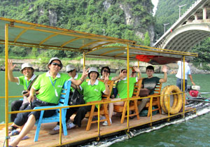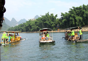 靜靜漓江上,綠之韻營銷伙伴乘坐竹筏,一副悠然自得的畫卷應(yīng)景而生。