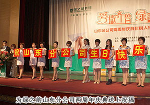 2012年5月16日,綠之韻山東分公司“愛撒齊魯,綠韻山東”兩周年慶典暨“樹人行動”愛心捐助活動在濟(jì)南梨園大戲院隆重舉行。綠之韻集團(tuán)執(zhí)行總經(jīng)理龔振、副總經(jīng)理何健,華東區(qū)域業(yè)務(wù)總監(jiān)梅其慧、業(yè)務(wù)經(jīng)理譚紅,山東分公司副經(jīng)理孫自智以及鞏春華、張美華、范桂春、張吉慶、譚佃選、申文高、馬光祿、朱建昌、臧延福、徐繼法、高玉霞、李家勇、曹穎、劉玉榮、陳培英等優(yōu)秀經(jīng)銷商出席。數(shù)百名綠之韻伙伴共同分享山東分公司不斷發(fā)展、走向成功的喜悅,展望山東綠之韻事業(yè)的美好未來。