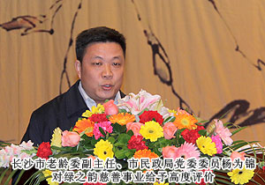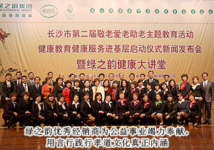 2012年4月17日,由綠之韻集團(tuán)與長沙市老齡委共同舉辦的長沙市第二屆敬老愛老助老活動啟動儀式在長沙市人民政府隆重舉行。原中共長沙市委副書記張慧明,原長沙市人大主任、市老齡委顧問楊宏,原長沙市人大副主任、市老齡委顧問劉湘皋,湖南省老齡委辦公室副主任李永勝、劉憲銘,長沙市老齡委常務(wù)副主任、市民政局局長曹再興,長沙市老齡委副主任、市民政局黨委委員楊為錦,長沙市老齡委副主任、辦公室主任廖肇聯(lián)等蒞臨指導(dǎo),長沙市工商行政管理局、財政局、科學(xué)技術(shù)局等50家合作政府機(jī)關(guān)、企業(yè)代表與綠之韻優(yōu)秀經(jīng)銷商張建軍、黃翔、李正元等共計1300余人參加了啟動儀式。
