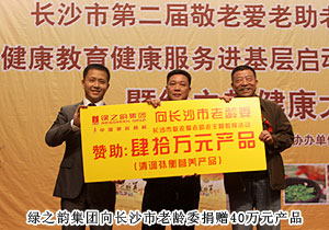 啟動儀式上,綠之韻集團(tuán)副總經(jīng)理何健代表綠之韻慈善基金向長沙市老齡委捐贈40萬元產(chǎn)品,為老人送上關(guān)愛與溫暖。綠之韻集團(tuán)執(zhí)行總經(jīng)理龔振表示:綠之韻堅持以社會公益為己任,并大力展開“尋找百歲老人”“健康社區(qū)行”“健康大講堂”等公益活動,積極承擔(dān)社會責(zé)任,此次全體綠之韻人要以敬老愛老助老活動為契機(jī),弘揚(yáng)中華民族“老吾老以及人之老”的傳統(tǒng)美德,號召全社會關(guān)注老人健康,關(guān)愛老人生活。會上,綠之韻集團(tuán)憑借在老年公益慈善行動中的突出貢獻(xiàn)被評為“長沙市老年健康事業(yè)共建單位”;集中華五千年養(yǎng)生文化之大成的“清調(diào)補(bǔ)衡”綠之韻養(yǎng)生套盒被指定為“老年人健康養(yǎng)生專用產(chǎn)品”;綠之韻集團(tuán)董事長胡國安被授予“崇德積善慈父孝子為人先,弘揚(yáng)孝道敬老愛親我做起”榮譽(yù)匾牌,長沙市老齡委副主任、市民政局黨委委員楊為錦、廖肇聯(lián)為綠之韻集團(tuán)頒發(fā)榮譽(yù)。楊為錦表示:綠之韻為推動老齡健康事業(yè)發(fā)展積極奉獻(xiàn),是敬老愛老助老的模范企業(yè),希望未來能繼續(xù)發(fā)揮企業(yè)優(yōu)勢,讓更多老年人安享健康、幸福的晚年。