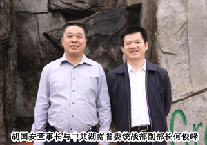 2012年4月13日,中共湖南省委統(tǒng)戰(zhàn)部副部長何俊峰一行蒞臨綠之韻集團,就湖南省“萬企聯(lián)村,共同發(fā)展” 30個省級優(yōu)秀市場項目之一的——綠之韻益陽安化萬畝中藥材種植基地建設(shè)情況進行深入調(diào)研。湖南省優(yōu)秀政協(xié)委員、綠之韻集團董事長胡國安、董事常務(wù)副總裁勞嘉全程陪同調(diào)研。