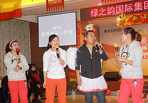 新春團拜會是綠之韻每一位員工年終狂歡的舞臺,集團領(lǐng)導、分公司、下屬基地的代表們歡聚一堂,各部門全員參與,準備了幽默的小品、創(chuàng)意的整蠱、歡動的舞蹈及各類令人捧腹的節(jié)目,熱熱鬧鬧迎新春!龍騰虎躍2012,我們來了!