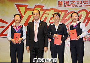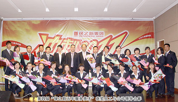 2011年11月2日,綠之韻集團2011年第三季度員工大會暨“綠之韻五年服務英才”頒獎典禮在綠之韻國際大酒店隆重召開,綠之韻集團高層領導及全體員工及各下屬分支機構員工代表出席會議。本次會議主題以“沖刺2011”為主題,全面總結了過去一季度各項工作,并開展下一步工作部署,爭取在2011年最后沖刺階段獲得更大收獲。