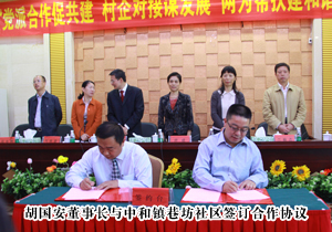 2011年10月16日,由中共湖南省委統(tǒng)戰(zhàn)部、長沙市工商聯(lián)舉辦的“黨派合作促共建,村企對接謀發(fā)展,兩為幫扶建和諧”簽約儀式在瀏陽革命老區(qū)——胡耀邦總書記故里中和鎮(zhèn)召開。中共湖南省委統(tǒng)戰(zhàn)部副部長唐建、長沙市政協(xié)副主席、民建長沙市委主委段安娜、長沙市政協(xié)副主席、市工商聯(lián)主席彭繼球、中共長沙市委統(tǒng)戰(zhàn)部常務(wù)副部長劉應(yīng)群等出席簽約儀式。綠之韻集團董事長胡國安作為長沙市工商聯(lián)副主席積極參與“村企對接工作”與瀏陽市中和鎮(zhèn)簽訂村企對接簽約,規(guī)劃在當(dāng)?shù)亟ㄔO(shè)2000畝紫錐菊、蘆薈、黃芪中藥材基地。據(jù)悉,這是綠之韻集團“萬企聯(lián)村”萬畝中藥材基地建設(shè)項目繼益陽、郴州之后第三個選址點。