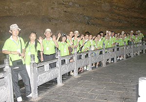 “世界溶洞全能冠軍”黃龍洞是此次張家界之旅的第一站,七月炎炎夏日,黃龍洞自然空調(diào)帶來的清涼是送給伙伴們的第一份禮物。從狹小的通道走進(jìn)去,一個(gè)繽紛神秘的世界讓所有伙伴驚嘆不已。立體的洞穴結(jié)構(gòu),超過10萬平方米的龐大的洞穴空間,寬闊的龍宮廳及數(shù)以萬計(jì)的石筍,高大的洞穴瀑布,讓黃龍洞蜚聲海外。洞內(nèi)有1庫、2河、3潭、4瀑、13大廳、98廊,以及幾十座山峰,上千個(gè)白玉池和近萬根石筍。由石灰質(zhì)溶液凝結(jié)而成的石鐘乳、石筍、石柱、石花、石幔、石枝、石管、石珍珠、石珊瑚等遍布其中,無所不奇,無奇不有,仿佛一座神奇的地下“魔宮”?;锇閭兇┧笤邶埼鑿d、響水河、天仙瀑、天柱街、龍宮等六大游覽區(qū),欣賞定海神針、萬年雪松、龍王寶座、火箭升空、花果山、天仙瀑布等100多個(gè)景點(diǎn),深深陶醉在大自然神奇的懷抱里。