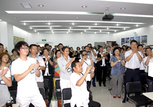 在分公司全體員工及遼寧地區(qū)營銷伙伴的列隊歡迎下,胡國安董事長高興的跨入了公司大門,并一一與大家握手,感謝大家的辛苦工作。隨后胡總參觀了遼寧分公司的展廳、會議室、辦公室,詳細詢問了分公司成立前后籌備工作以及近一個月來的市場推廣、市場服務(wù)情況。在分公司會議室,胡總與每一位員工進行了親切座談,他首先肯定了分公司成立以來,大家所做的工作,并強調(diào)要加強分公司人員管理,做到“帥有道,將有法,兵有勇?!薄皫洝币腥忠庾R,有戰(zhàn)略意識,要有高度,有胸懷,要有識人之眼、用人之膽、容人之量;“將”要能夠上下融通,理解和貫徹“帥”的意圖,要有招術(shù),有凝聚力,能帶兵沖鋒陷陣;“兵”要有堅韌不拔的毅力,有不達目的不罷休和吃苦耐勞的精神,要有戰(zhàn)斗力。胡總還勉勵大家在平時的工作中,要多動腦筋,多用心,要細致入微地去開發(fā)市場,真心實意地和客戶交流,踏實穩(wěn)妥的做好售后服務(wù)。要依托分公司在遼寧的良好影響,逐步用實際行動,樹立起綠之韻在遼寧市場的堅實品牌,用我們良好的服務(wù)去征服營銷伙伴、消費者。常在異鄉(xiāng)為異客,每逢佳節(jié)倍思親。對于總部派駐遼寧分公司的工作人員,胡國安董事長也鼓勵大家克服生活和工作上的多種困難,胡總非常關(guān)心大家的生活,他詢問員工工作、生活等情況,希望大家在遼寧分公司工作好,希望好,讓公司放心,也讓家人放心。