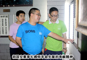 2011年7月1日是中國(guó)共產(chǎn)黨成立90周年紀(jì)念日,為隆重紀(jì)念這一偉大節(jié)日,進(jìn)一步堅(jiān)定廣大黨員的理想信念,激發(fā)廣大黨員在各項(xiàng)工作中的積極性和創(chuàng)造力,2011年6月17日,綠之韻集團(tuán)黨支部、團(tuán)支部率領(lǐng)集團(tuán)優(yōu)秀共產(chǎn)黨員、預(yù)備黨員、團(tuán)員、入黨積極分子代表開展“走進(jìn)紅色記憶,情系熱土瀟湘”系列活動(dòng),參觀了愛國(guó)主義教育示范基地秋收起義文家市會(huì)師紀(jì)念館、原中國(guó)共產(chǎn)黨中央委員會(huì)總書記胡耀邦故居。綠之韻集團(tuán)董事長(zhǎng)胡國(guó)安、董事常務(wù)副總裁勞嘉、黨支部書記許達(dá)仲參加活動(dòng),共同感悟革命先驅(qū)的奉獻(xiàn)精神,共同追憶中國(guó)黨建的崢嶸歲月。