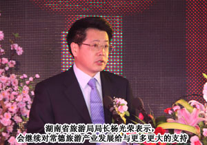 開幕式由中共常德市委副書記、市人大常委會主任曹儒國主持。湖南省人民政府副省長劉力偉,國家旅游局綜合司巡視員唐洪廣,湖南省旅游局局長楊光榮,中共常德市委副書記、市長陳文浩以及常德市各級領導出席了開幕儀式,與近1000名來自全國各地的旅游客商共話常德旅游業(yè)的發(fā)展。