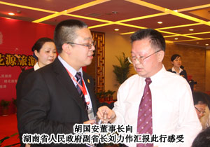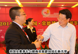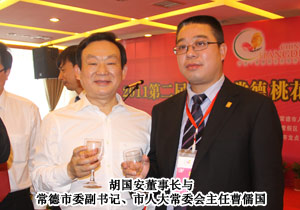 2011年3月28日,由湖南省旅游局、常德市人民政府共同主辦,以“相約桃花源里,給力幸福常德”為主題的2011年第二屆中國?常德桃花源旅游節(jié)盛情啟幕。旅游節(jié)以旅游項目推介會、“桃花源里”名人訪談、“桃花源里”旅游觀光、桃花源風光攝影大展四大主體活動聚焦常德。湖南省青年企業(yè)家協(xié)會副會長、綠之韻集團董事長胡國安應常德市人民政府之邀前往常德進行商務考察,并以自身對湖南省經(jīng)濟發(fā)展作出的貢獻受到湖南衛(wèi)視專題采訪和報道。綠之韻國際集團(東南亞)股份有限公司運營副總裁李繼前、湖南市場優(yōu)秀分銷商張建軍出席。