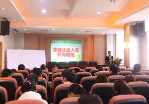 在培訓(xùn)學(xué)習(xí)中,集團(tuán)員工近300人共同學(xué)習(xí)了綠之韻最新推出的《直銷從業(yè)人員行為規(guī)范知識(shí)88問(wèn)》及《直銷從業(yè)法律法規(guī)匯編》。結(jié)合實(shí)際工作,提升了員工對(duì)直銷行業(yè)規(guī)范經(jīng)營(yíng)的意識(shí),有效地增強(qiáng)專業(yè)化的服務(wù)水平和管理能力。繼2011年度高峰論壇三千精英學(xué)習(xí)直銷法律法規(guī)之后,集團(tuán)將員工學(xué)習(xí)直銷法律法規(guī)進(jìn)行普及,為深化綠之韻規(guī)范經(jīng)營(yíng)打下堅(jiān)實(shí)基礎(chǔ)。作為中西部第一家獲得國(guó)家商務(wù)批準(zhǔn)的直銷企業(yè),綠之韻集團(tuán)將始終堅(jiān)持“低調(diào)運(yùn)作,行業(yè)自律”的經(jīng)營(yíng)法則,為直銷行業(yè)的規(guī)范有序發(fā)展起到推動(dòng)作用。