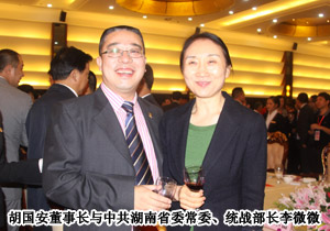 中共湖南省委書記、湖南省人大常委會主任周強、中共湖南省委副書記、湖南省人民政府省長徐守盛、國家工商行政管理總局副局長鐘攸平、中國個體勞動者協(xié)會會長甘國屏、全國工商聯(lián)副主席傅軍等近50位各級政府領(lǐng)導(dǎo)蒞臨現(xiàn)場。2009年度中國十大杰出湘商、綠之韻集團董事長胡國安應(yīng)邀出席,他表示:綠之韻集團在各級政府的關(guān)心與支持下,七年時間成長為中西部第一家獲牌的直銷企業(yè),有責(zé)任有義務(wù)為湖南省經(jīng)濟發(fā)展做出積極貢獻。將保持高度的投資熱情和敏銳的發(fā)展目光,在湘商大會這個蘊含無限機遇的舞臺上,加強彼此交流和合作,與天下湘商共話湖南經(jīng)濟發(fā)展,打造湘商品牌!