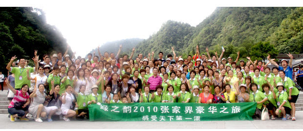 2010年7月29日, 150多名綠之韻中層骨干帶著參加2010年第二屆系統(tǒng)建設暨中層骨干研討會收獲新知的喜悅,在董事長胡國安的帶領下,展開了為期四天的張家界豪華之旅。