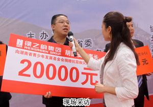2010年4月28日,湖南省青工戰(zhàn)線抗震救災(zāi)捐款暨圖書義賣活動(dòng)在湖南省圖書館舉行,共青團(tuán)湖南省委副書記、湖南省青年企業(yè)家協(xié)會(huì)會(huì)長(zhǎng)顏海林、湖南省出版物發(fā)行協(xié)會(huì)會(huì)長(zhǎng)彭國(guó)華、湖南省青少年發(fā)展基金會(huì)常務(wù)副秘書長(zhǎng)彭韜等相關(guān)省市領(lǐng)導(dǎo)出席。綠之韻集團(tuán)董事長(zhǎng)胡國(guó)安積極參與此次活動(dòng),并在現(xiàn)場(chǎng)以個(gè)人名義再次向玉樹災(zāi)區(qū)捐贈(zèng)20000元現(xiàn)金。