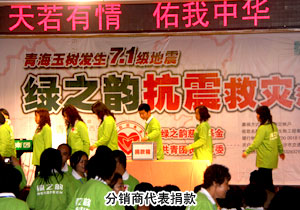 截止2010年4月18日15:00時(shí),綠之韻集團(tuán)現(xiàn)場(chǎng)共募得30772元愛心善款,與此同時(shí),全國(guó)各地綠之韻分銷商的愛心款項(xiàng)源源不斷匯入綠之韻慈善基金指定帳戶,捐款仍在繼續(xù)……