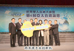 2010年4月6日-8日,素有“直銷界的奧斯卡盛宴”之稱的第六屆亞太直銷論壇在臺灣臺北國際會議中心隆重召開。本屆論壇受到了業(yè)界的關(guān)注及當(dāng)?shù)卣拇罅χС郑瑑砂独硎聠挝还餐帧秲砂稊y手,共創(chuàng)新機》之鑰,為大會活動揭開序幕,大會協(xié)辦單位伯仲文教基金會董事長、中國國民黨榮譽主席吳伯雄先生親臨開幕式并致詞,來自日本、中國、港澳、馬來西亞、印尼、新加坡等12個國和地區(qū)行業(yè)人士;數(shù)十位專家學(xué)者、上百位企業(yè)高管參加了會議。 綠之韻集團董事長胡國安、董事常務(wù)副總經(jīng)理勞嘉、綠之韻迪博制藥生產(chǎn)廠廠長譚雪軍以及綠之韻高層分銷商代表參加了此次活動。作為本次論壇活動的VIP嘉賓,胡國安董事長受到了中國國民黨榮譽主席吳伯雄先生的親切接見。