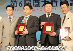 頒獎典禮是論壇的重頭戲,2009亞太區(qū)十佳最具品牌價值企業(yè)等11個獎項各得其主,頒獎典禮盛況空前。綠之韻集團榮獲 “2009亞太區(qū)創(chuàng)新行銷案例獎”,綠之韻藍天系統(tǒng)領(lǐng)導(dǎo)人張吉福榮獲“亞太區(qū)十佳培訓(xùn)講師”稱號。