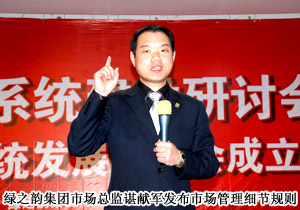 此次研討會力邀東南亞最受歡迎的臺灣知名系統(tǒng)建設(shè)專家時臺明主講“如何建立系統(tǒng)推進市場發(fā)展”,其結(jié)合自身經(jīng)驗與綠之韻市場實際情況,在幽默風(fēng)趣、生動比喻的授課中向與會精英傳授了成功組建和管理系統(tǒng)的法寶,揭開系統(tǒng)建設(shè)的秘密。與此同時,綠之韻集團執(zhí)行總經(jīng)理龔振在講課中著重強調(diào)組建綠之韻系統(tǒng)發(fā)展委員會的六大目標(biāo)和三大使命,他表示:在市場競爭日益激烈,團隊個人綜合水平成長較慢,市場競爭能力較弱,團隊體系步調(diào)不一致等諸多現(xiàn)象的影響下,系統(tǒng)發(fā)展委員會的成立是民心所向、大勢所趨。研討會臨近尾聲,綠之韻集團董事長胡國安作總結(jié)發(fā)言,不僅對綠之韻系統(tǒng)發(fā)展委員會的組建表示祝賀,肯定了與會精英的實干精神,同時表示,2010年是機遇與挑戰(zhàn)并存的一年,綠之韻人必須團結(jié)一致,才能有決勝千里之外的氣魄和膽量,唱響未來勝利的凱歌!