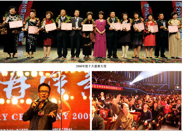 2009年,集團(tuán)公司陸續(xù)投資1000萬,正式啟動“綠之韻樹人行動”,搭建大學(xué)生與小學(xué)生愛心溝通的橋梁,以愛心傳遞愛心,更好的服務(wù)社會年會之際,來自吉林的分銷精英為我們帶來了精彩的小品《百年樹人》,感人的故事背后,我們也深深領(lǐng)悟到“綠之韻樹人行動”倡導(dǎo)的“取之社會,用之社會”的責(zé)任理念來自革命老區(qū)河北省唐縣的文聯(lián)主席陳識路先生專程千里趕來贈送了一面錦旗給綠之韻集團(tuán)。六年來,綠之韻集團(tuán)捐助了多項慈善事業(yè),捐助款物達(dá)千萬。 2008十大愛心慈善大使的頒獎讓人肅然起敬。