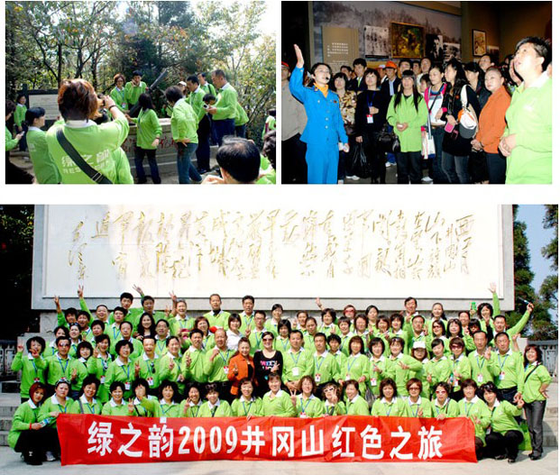 2009年10月28至30日,剛剛參加完綠之韻第二屆星級店長暨中層骨干研討會的分銷精英和總部員工代表,在綠之韻集團董事、常務(wù)副總經(jīng)理勞嘉的帶領(lǐng)下展開了為期三天的“綠之韻2009井岡山紅色之旅”。