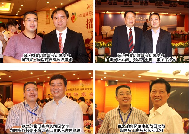 與此同時,第三屆湘商大會財富論壇暨2009杰出湘商頒獎典禮在湘潭舉行,綠之韻集團(tuán)胡國安董事長與金蝶國際軟件集團(tuán)有限公司董事長徐少春、華澤集團(tuán)董事長吳向東、步步高董事長王填等12人當(dāng)選“2009中國杰出湘商”。在接過“2009中國杰出湘商”獎牌的同時,胡國安董事長表示,這是一份榮譽,更是一份責(zé)任。作為成長于湖南的民營企業(yè),綠之韻集團(tuán)今后還要更多回報湖南、回報社會。