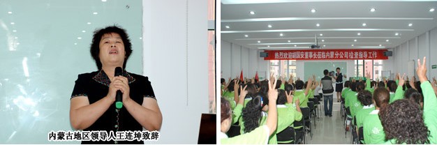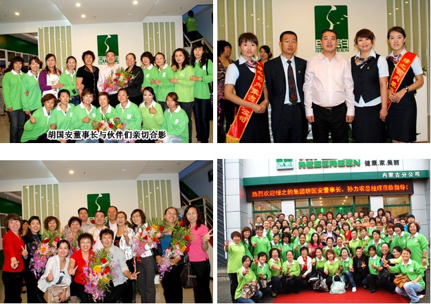 在分公司經(jīng)理侯立新、內(nèi)蒙古地區(qū)領(lǐng)導(dǎo)人王連坤以及幾位主要骨干的陪同下,胡董一行參觀了分公司,分別聽取了分公司負(fù)責(zé)人及市場(chǎng)領(lǐng)導(dǎo)人的工作匯報(bào)與下一步市場(chǎng)的規(guī)劃、展望與運(yùn)營(yíng)等,對(duì)分公司的籌備及運(yùn)營(yíng)給予了充分的肯定和贊許。參觀分公司之后,又舉行了100多位內(nèi)蒙古地區(qū)精英骨干會(huì)議。王連坤老師代表內(nèi)蒙古地區(qū)分銷伙伴回顧了6年綠之韻在內(nèi)蒙古的發(fā)展,至動(dòng)情處熱淚盈眶,激動(dòng)之情溢于言表。