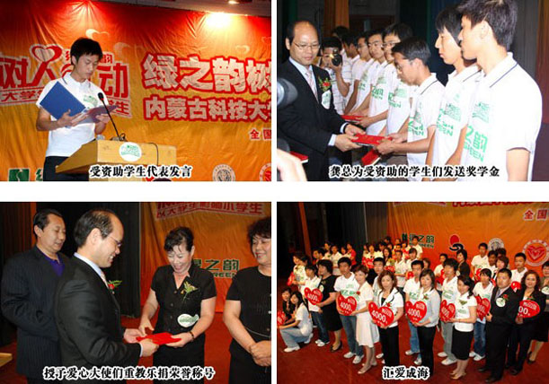 繼首站在吉林東北師范大學(xué)舉行了樹(shù)人行動(dòng)獎(jiǎng)學(xué)金的發(fā)放儀式后,綠之韻慈善基金預(yù)計(jì)總投入1000萬(wàn)開(kāi)展的“綠之韻樹(shù)人行動(dòng)”愛(ài)心圣火又在內(nèi)蒙古點(diǎn)燃。