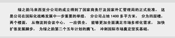 綠之韻馬來西亞分公司將于六月底試營(yíng)業(yè)