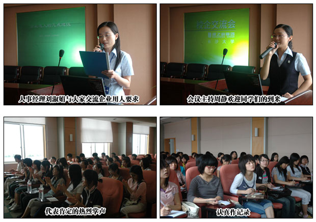 2008年6月17日,為響應(yīng)共青團省委人才培養(yǎng)計劃,加強學(xué)校和企業(yè)更好的交流合作,實現(xiàn)學(xué)校輸送合適人才到企業(yè),企業(yè)順利引入理想人才,在湖南省共青團省委的組織下,長沙大學(xué)大一文秘專業(yè)的幾十名大學(xué)生走進了享有盛譽的綠之韻集團,與企業(yè)進行一次零距離接觸。