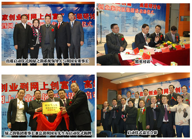 綠之韻集團董事長兼總裁胡國安與晨訊傳媒總裁禹路先生合著的《財富第六波》——在家創(chuàng)業(yè)一書聚焦當代利用互聯(lián)網(wǎng)在家創(chuàng)業(yè)的財富浪潮,引發(fā)了社會各界的巨大反響,該書發(fā)行以來受到了行業(yè)以及讀者的高度關注,創(chuàng)下了“2007年度中國國際圖書網(wǎng)經(jīng)濟類書籍關注排行榜第三名”、“《京華時報》京華超市專版連續(xù)17榜發(fā)行量前5名”的驕人成績。得到了中國雅虎總裁曾鳴、搜狐網(wǎng)首席執(zhí)行官兼總裁張朝陽、中國社科院信息化研究中心秘書長姜奇平、阿里巴巴首行執(zhí)行官馬云等互聯(lián)網(wǎng)權威的聯(lián)袂推薦。由此,特別策劃了“財富第六波——從在家創(chuàng)業(yè)到網(wǎng)上創(chuàng)富”大型主題研討會,群策群力,眾志成城,以推動中國財富健康增長和經(jīng)濟大繁榮。