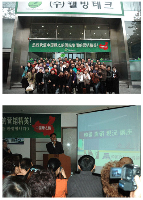 韓國“Wellbeingtech”公司從事直銷業(yè)已有三年時間,目前擁有四百多個產品,覆蓋了生活日用的各個方面,深受韓國人的喜愛。在這里,我們不僅感受到韓國同行業(yè)者對綠之韻的熱烈歡迎,而且,也看到韓國直銷行業(yè)一派和諧而充滿朝氣的忙碌景象。年輕化的銷售人員或是圍桌而坐認真的溝通交流,或是齊聚一起坐在小會議室里聚精會神地聽著講師授課。一張張年輕的面容流露出求知若渴的神情,讓我們以為走進了某所大學的教室。韓國人民對直銷事業(yè)的熱愛和認可度可見一斑。