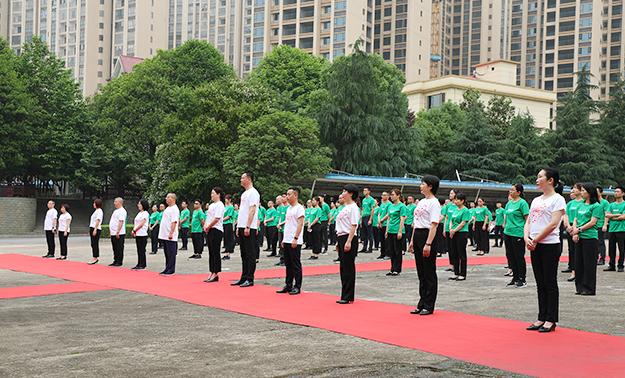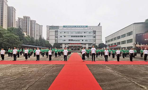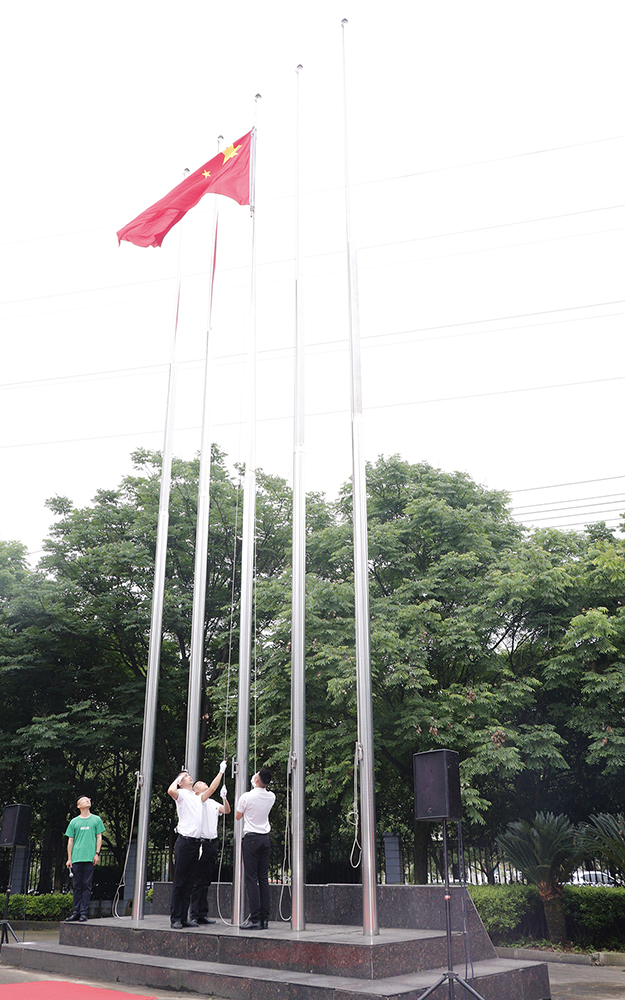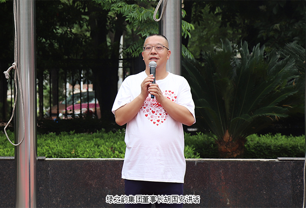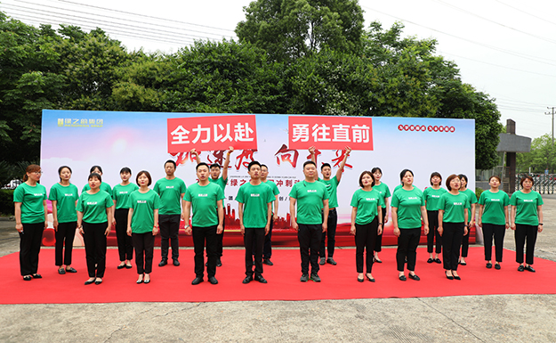 一曲激昂澎湃的《綠韻飛揚(yáng)》拉開了動(dòng)員大會(huì)序幕。在集團(tuán)公司前坪,全體綠之韻人統(tǒng)一著裝、整齊列隊(duì)迎接升旗儀式暨動(dòng)員大會(huì)。伴隨著莊嚴(yán)雄壯的國歌聲,鮮艷的五星紅旗冉冉升起,綠之韻家人向國旗行注目禮,內(nèi)心激蕩著對偉大祖國的熱愛和崇敬。
