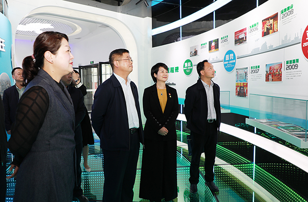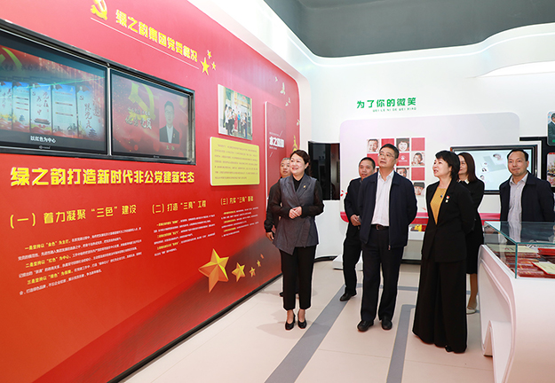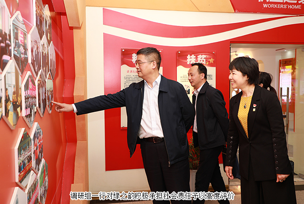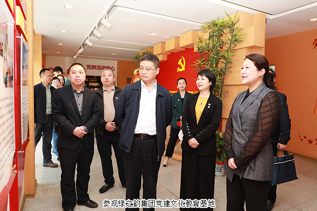 調(diào)研組一行先后參觀了綠之韻黨建文化教育基地和國際會(huì)議中心展廳。在黨建文化教育基地,中共長沙市委組織部副部長、兩新工委書記楊俊認(rèn)真了解了綠之韻非公黨建工作情況,與董事總裁勞嘉、黨委書記劉云進(jìn)行了詳細(xì)交流。黨委書記劉云介紹到:綠之韻是一家有著“綠體紅心”特質(zhì)的企業(yè),始終將非公黨建工作置于發(fā)展戰(zhàn)略高度,自2006年成立黨支部,2013年獲批成立黨總支,2016年8月獲批成立黨委以來,堅(jiān)持構(gòu)建以集團(tuán)黨組織為核心,以集團(tuán)工會(huì)、公益基金會(huì)為主體,以三色(紅色、金色、綠色)建設(shè)為策略,注重紅色基因塑造的新時(shí)代非公黨建新生態(tài),實(shí)施“指導(dǎo)式”“責(zé)任式”“溫情式”管理,憑借著“正確領(lǐng)導(dǎo)踏實(shí)干,老板重視認(rèn)真干,群眾支持加油干”的黨建工作理念,在全行業(yè)內(nèi)創(chuàng)建了第一家黨建文化教育基地,形成了具有綠之韻特色的非公黨建工作品牌。調(diào)研組一行邊走邊看,對綠之韻近年來黨建工作的創(chuàng)新舉措和喜人成績給予了高度評價(jià)。