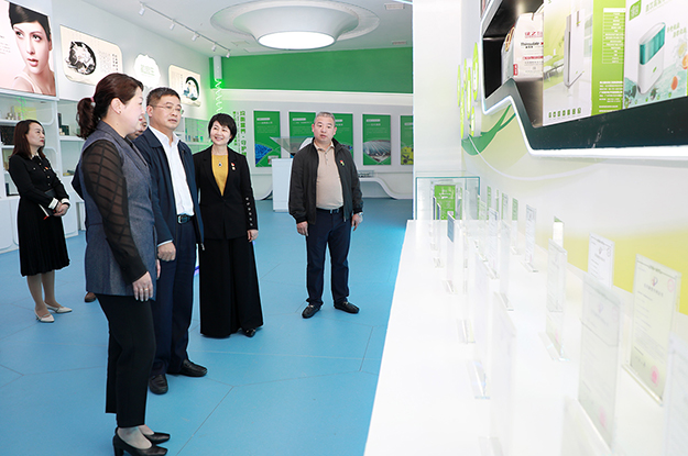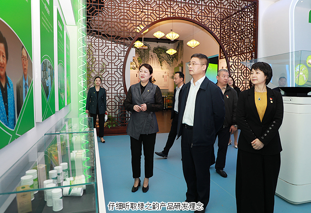 在綠之韻國際會(huì)議中心展廳,勞嘉總裁圍繞企業(yè)文化、產(chǎn)品研發(fā)、市場布局和公益慈善等方面的工作情況向調(diào)研組一行作了簡要匯報(bào)。展廳內(nèi)大量的圖片、文字和視頻介紹,以及多媒體聲光電同步演示技術(shù)展出的數(shù)百件產(chǎn)品實(shí)物向調(diào)研組一行生動(dòng)展示了綠之韻深耕大健康行業(yè)十七年所積淀的科研技術(shù)優(yōu)勢、產(chǎn)學(xué)研綜合實(shí)力以及產(chǎn)業(yè)鏈全貌。多年來,綠之韻始終堅(jiān)持“以產(chǎn)品為導(dǎo)向”的研發(fā)理念,不僅成立了以院士、專家教授為核心的產(chǎn)品專家委員會(huì),同時(shí)加大科研投入,不斷深化與知名高等院校、科研機(jī)構(gòu)的“產(chǎn)學(xué)研”合作,抓緊籌建綠之韻博士后科研工作站。目前,公司主營產(chǎn)品涵蓋健康食品、護(hù)膚品、日用品以及健康生活等百余品種,在長沙、益陽、南京、廣州等地建立了5大種植基地、3大生產(chǎn)基地,擁有“韻宜生”“綠韻蘭茜”“享居”“億她”四大子品牌,銷售網(wǎng)絡(luò)覆蓋全國大部分省市。在振興實(shí)業(yè)的同時(shí),綠之韻積極承擔(dān)企業(yè)公民責(zé)任,踴躍參與和傾情捐助了萬企幫萬村、同心工程、綠+兒童、關(guān)愛貧困母親、賑災(zāi)扶貧等100多項(xiàng)社會(huì)公益事業(yè),累計(jì)捐贈(zèng)款物7000多萬元。此次疫情期間,綠之韻公益基金會(huì)第一時(shí)間發(fā)出愛心募捐倡議,公司黨委、工會(huì)、全國分公司、各下屬機(jī)構(gòu)上下聯(lián)動(dòng),通過多種方式積極援助湖北湖南抗擊疫情,累計(jì)捐贈(zèng)款物200多萬元。