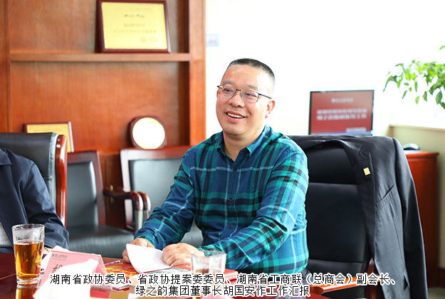 2020年3月26日,湖南省政協(xié)副主席張大方、省政協(xié)副秘書(shū)長(zhǎng)陳宏忠、省政協(xié)提案委主任袁海平、省政協(xié)人資環(huán)委主任李壯麗一行蒞臨綠之韻集團(tuán)調(diào)研指導(dǎo);瀏陽(yáng)經(jīng)開(kāi)區(qū)黨工委委員、管委會(huì)副主任何六生陪同調(diào)研。湖南省政協(xié)委員、省政協(xié)提案委委員、湖南省工商聯(lián)(總商會(huì))副會(huì)長(zhǎng)、綠之韻集團(tuán)董事長(zhǎng)胡國(guó)安,湖南省工商聯(lián)女商會(huì)常務(wù)副會(huì)長(zhǎng)、瀏陽(yáng)市工商聯(lián)副主席、綠之韻集團(tuán)董事總裁勞嘉,副總裁胡均安,黨委書(shū)記劉云等公司領(lǐng)導(dǎo)全程陪同。