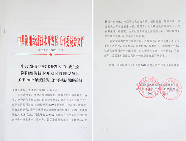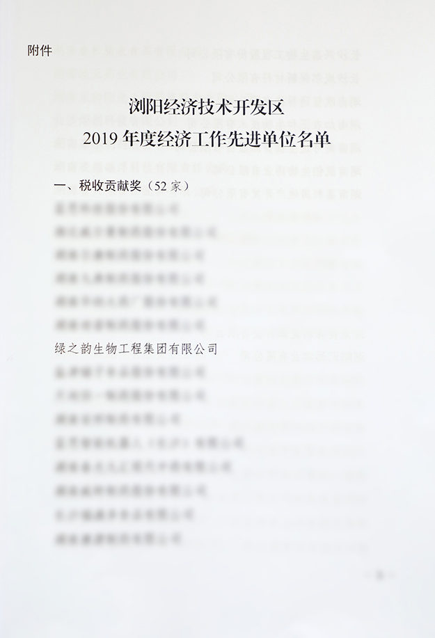 經開區(qū)黨工委副書記、管委會副主任尋院豪通報《經開區(qū)2019年度經濟工作考核結果》;經開區(qū)黨工委委員、管委會副主任(掛職)、高新區(qū)黨工委書記喻輝通報《高新區(qū)2019年度經濟工作考核結果》。大會對2019年度先進企業(yè)及個人予以集中表彰。綠之韻集團憑借過去一年取得的突出成績,稅收貢獻位居園區(qū)前列,被國家級瀏陽經開區(qū)管委會授予2019年度“稅收貢獻獎”“智能發(fā)展獎”“知識產權獎”和“自主創(chuàng)新獎”。