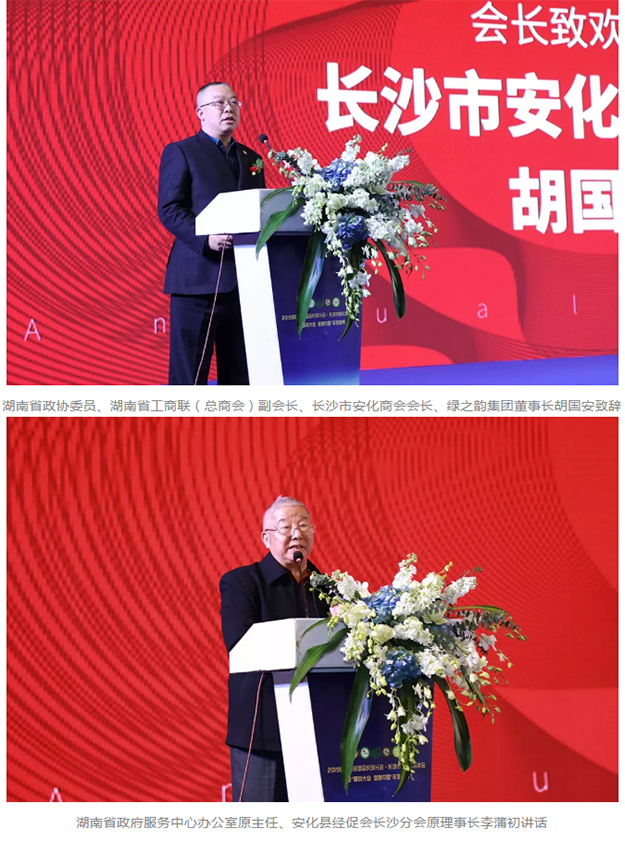 會議伊始,湖南省政協(xié)委員、湖南省工商聯(lián)(總商會)副會長、長沙市安化商會會長、綠之韻集團(tuán)董事長胡國安致辭。胡國安會長感謝給予商會各項(xiàng)工作關(guān)心和支持的各位領(lǐng)導(dǎo)及各兄弟商會,總結(jié)2019年商會發(fā)展成果,并對2020年工作進(jìn)行部署。他希望,2020年,安化商會要繼續(xù)強(qiáng)化“平臺”和“橋梁”作用,內(nèi)外挖潛,擴(kuò)容拓新,發(fā)揮優(yōu)勢,提升服務(wù),使商會真正成為團(tuán)結(jié)之家、服務(wù)之家、溫暖之家,促進(jìn)安化籍企業(yè)家在長沙健康發(fā)展,努力為家鄉(xiāng)安化經(jīng)濟(jì)社會建設(shè)不遺余力,努力爭創(chuàng)省內(nèi)一流商會。