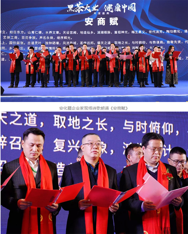 把酒言歡慶新年,情真意切敘鄉(xiāng)情。當(dāng)晚,還舉行了“黑茶大業(yè) 健康中國”2019年度盛典。盛典現(xiàn)場進(jìn)行了湖南省振興黑茶研究院授牌儀式,“安化黑茶終身成就獎”“安化黑茶科技領(lǐng)軍人物獎”“十大營銷創(chuàng)新人物”等系列獎項(xiàng)頒獎儀式,黑茶產(chǎn)業(yè)發(fā)展主題演講等環(huán)節(jié)。優(yōu)美的音樂、動人的舞蹈、開懷的節(jié)目、熱情高漲的抽獎,整場晚會洋溢著歡樂的氣氛和濃濃的鄉(xiāng)情,歡聲笑語與美酒佳肴交織成鄉(xiāng)音裊裊,在湘江之濱的夜空中久久回蕩。