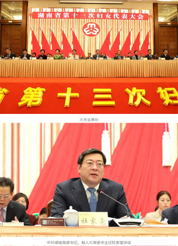 開(kāi)幕式上,中共湖南省委書(shū)記、省人大常委會(huì)主任杜家毫代表省委、省人大常委會(huì)、省政府、省政協(xié)向大會(huì)的召開(kāi)表示祝賀。他強(qiáng)調(diào),全省各級(jí)婦聯(lián)要牢牢堅(jiān)持黨的領(lǐng)導(dǎo)這一根本保證,牢牢把握橋梁紐帶的定位,牢牢抓住聯(lián)系和服務(wù)婦女這一工作生命線,切實(shí)增強(qiáng)政治性、先進(jìn)性、群眾性,更加關(guān)注、關(guān)心、關(guān)愛(ài)婦女兒童,最廣泛地凝聚婦女力量。各級(jí)黨委要加強(qiáng)和改進(jìn)對(duì)婦聯(lián)工作的領(lǐng)導(dǎo),支持和推動(dòng)?jì)D聯(lián)改革向縱深發(fā)展、在基層落地,重視婦聯(lián)干部隊(duì)伍建設(shè),關(guān)心培養(yǎng)婦女干部,努力為廣大婦女全面發(fā)展?fàn)I造良好環(huán)境。