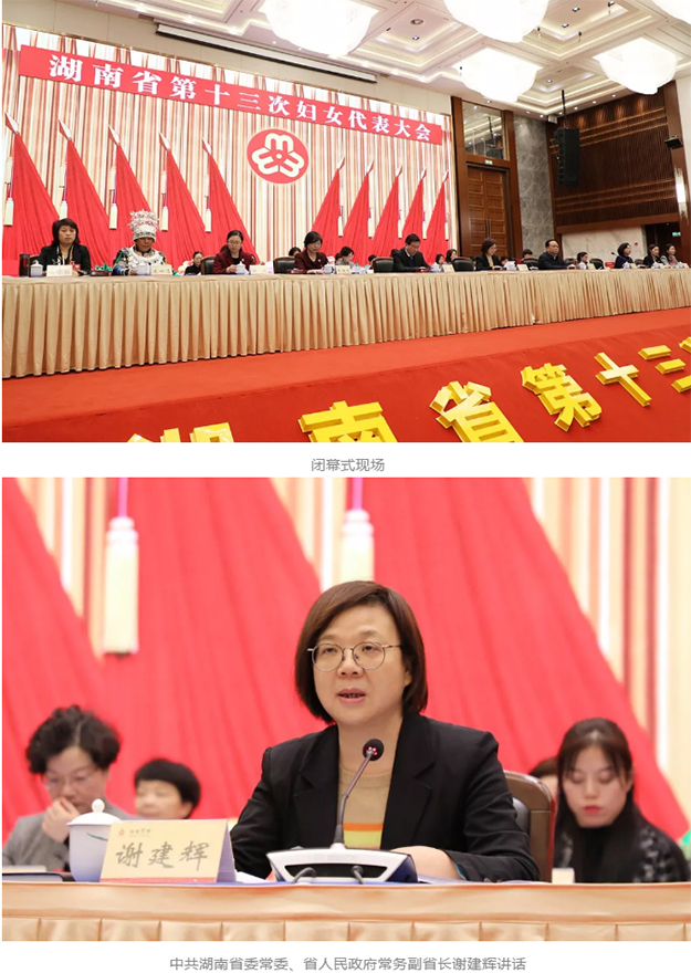 全國(guó)婦聯(lián)副主席、書(shū)記處書(shū)記夏杰代表全國(guó)婦聯(lián)高度評(píng)價(jià)了湖南婦女工作。她指出,要深入學(xué)習(xí)貫徹習(xí)近平新時(shí)代中國(guó)特色社會(huì)主義思想,團(tuán)結(jié)引領(lǐng)廣大婦女堅(jiān)定不移聽(tīng)黨話、跟黨走;要緊緊圍繞加快建設(shè)富饒美麗幸福新湖南,組織動(dòng)員廣大婦女發(fā)揮半邊天力量;要引導(dǎo)廣大婦女弘揚(yáng)社會(huì)主義家庭文明新風(fēng)尚,充分發(fā)揮家庭家教家風(fēng)在基層社會(huì)治理中的重要作用;要依法維護(hù)婦女合法權(quán)益,推動(dòng)完善促進(jìn)男女平等、婦女全面發(fā)展的制度機(jī)制;堅(jiān)定不移將婦聯(lián)改革進(jìn)行到底,不斷增強(qiáng)政治性、先進(jìn)性、群眾性。會(huì)上,湖南省婦聯(lián)十二屆主席姜欣作工作報(bào)告,湖南省總工會(huì)黨組書(shū)記、副主席徐文龍代表各人民團(tuán)體致賀詞。