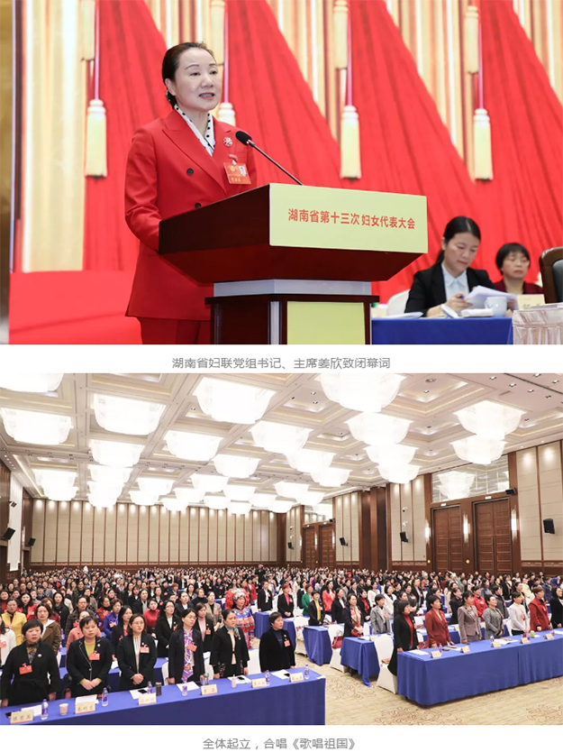閉幕式上,大會(huì)宣布了新當(dāng)選的省婦聯(lián)第十三屆主席、副主席,常務(wù)委員名單,通過(guò)了《關(guān)于湖南省婦聯(lián)第十二屆執(zhí)行委員會(huì)報(bào)告的決議》(草案)。姜欣當(dāng)選湖南省婦聯(lián)第十三屆主席。中共湖南省委常委、省人民政府常務(wù)副省長(zhǎng)謝建輝代表省委向新當(dāng)選的省婦聯(lián)領(lǐng)導(dǎo)班子表示熱烈祝賀。她希望,新一屆省婦聯(lián)領(lǐng)導(dǎo)班子立足新起點(diǎn),搶抓新機(jī)遇,團(tuán)結(jié)帶領(lǐng)廣大婦女開(kāi)拓進(jìn)取、扎實(shí)工作,奮力譜寫(xiě)湖湘婦女事業(yè)發(fā)展新篇章。大會(huì)在全體婦女代表共同合唱《歌唱祖國(guó)》的歌聲中落下帷幕。