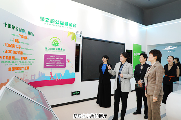 調(diào)研組一行參觀了綠之韻集團即將落成的國際會議中心展廳。綠之韻集團董事、總裁勞嘉、黨委書記劉云陪同調(diào)研組一行依次參觀了“水之源起、水之驕子、水之柔和、水之信仰、水之寬廣、水之謀略、水之長遠、水之使命”八個展廳,從文字、圖片、影視多角度、全方位向調(diào)研組一行展示了綠之韻入駐瀏陽經(jīng)開區(qū)十六年的發(fā)展歷程。勞嘉總裁圍繞產(chǎn)品研發(fā)、精準扶貧、非公黨建和公益慈善等方面的工作情況向調(diào)研組一行作了詳細匯報。多年來,綠之韻大力推進自主創(chuàng)新,深化產(chǎn)學研創(chuàng)新模式,先后與國內(nèi)多所高等院校達成科研合作,全面推進產(chǎn)品升級換代,基地建設亦日趨規(guī)模化、標準化、現(xiàn)代化,著力打造綠之韻大健康全產(chǎn)業(yè)鏈。在企業(yè)發(fā)展的同時,公司積極承擔社會責任,踴躍參與和傾情捐助了愛心助學、關愛貧困母親、修橋補路、賑災扶貧等百余項社會公益事業(yè),累計捐贈款物近7000萬元。