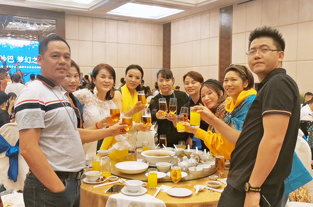 沙巴之旅的最后一個(gè)晚上,綠之韻為所有家人們準(zhǔn)備了驚喜的感恩答謝晚宴。傍晚時(shí)分,家人們身著精致的晚禮服,優(yōu)雅地步入晚宴大廳。晚宴現(xiàn)場(chǎng),來(lái)自綠之韻集團(tuán)董事長(zhǎng)胡國(guó)安、董事總裁勞嘉、總經(jīng)理劉維利的祝福視頻令在場(chǎng)家人們感動(dòng)不已,掀起了晚宴的第一個(gè)高潮。隨后,綠之韻集團(tuán)副總裁劉淑娟、副總經(jīng)理梅其慧為旅行期間過(guò)生日的綠之韻家人獻(xiàn)上了定制蛋糕、精美的禮品以及美好的祝愿,感動(dòng)與喜悅的淚水久久縈繞在家人的眼眶中。在此起彼伏的祝福聲與掌聲中,綠之韻家人們品嘗著豐盛的大餐,觀看著精彩紛呈的歌舞表演,互相分享著此次旅途的收獲與感悟?,F(xiàn)場(chǎng)一片歡聲笑語(yǔ),家人們度過(guò)了一個(gè)難忘而又迷人的夜晚。